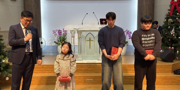 2025년 12월 28일 마지막 예배를 드리며 주일 2부 예배 교회학교 진급 & 졸업식을 했습니다. 교회학교 진급 & 졸업 * 유치부 : 육소이, 김효림 * 중고등부 : 육은표, 최지웅