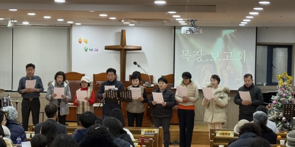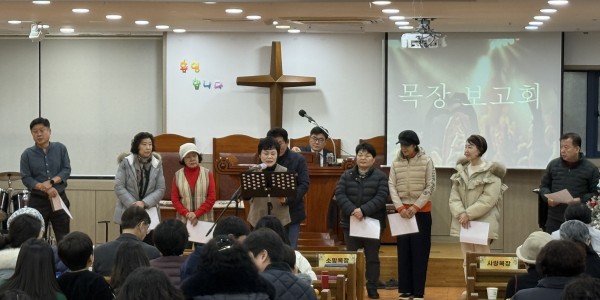 1월 2일 금요기도회 시간에 2026년도 각 목장(믿음, 소망, 사랑, 화평, 충성 목장)을  섬길 목자, 예비목자를 임명하고 함께 기도하는 시간을 가졌습니다.