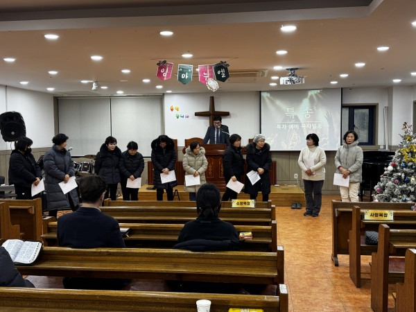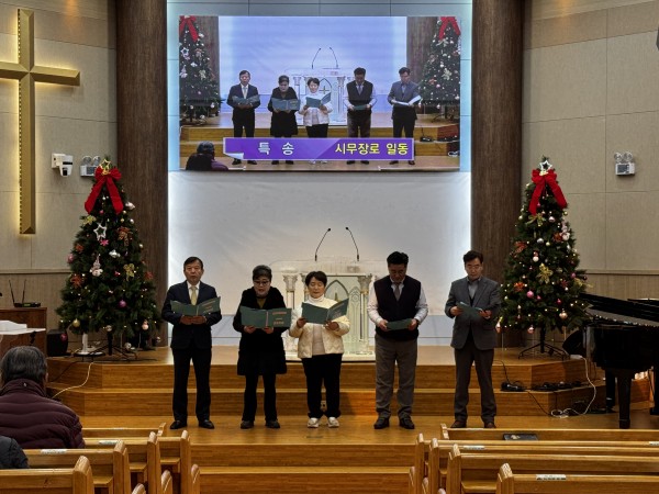 1월 12일 주일 오후예배시간에 제직헌신예배를 드렸습니다. 2025년도 각 부서를 섬길 임원들이 특송을 하였습니다.