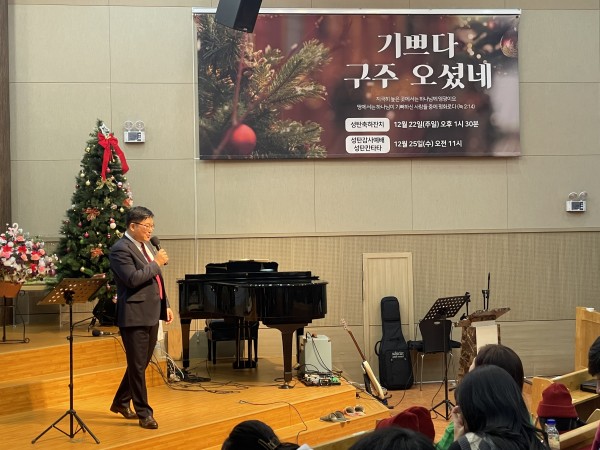 2024년 12월 22일 오후예배시간에 성탄축하잔치가 있었습니다.유치부, 아동부, 중고등부, 청년부, 에스더여전도회의 축하공연을 통해이 땅에 오신 예수님께 감사드리며, 다시 오실 예수님께 무한한 영광을 올려 드리는 시간을 가졌습니다.