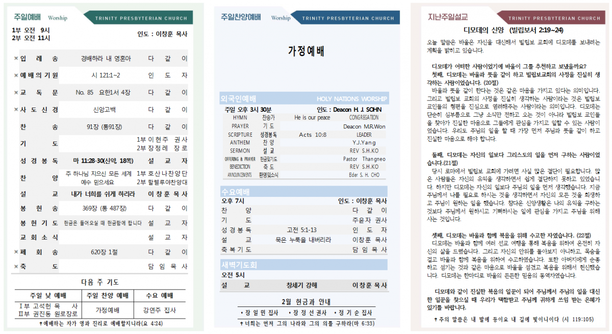 2021년 2월 14일 교회소식 삼위교회 댓글 0건 조회 17,887회 작성일 2021-02-13 16:14 가 본문내용 확대/축소 본문 2021년 2월 14일 교회소식2021년 2월 14일 교회소식 <이미지를 클릭하면 크게 보실 수 있습니다> 목록 댓글목록 이전글2021년 2월 21일 교회소식 21.02.20 다음글2021년 2월 7일 교회소식21.02.06