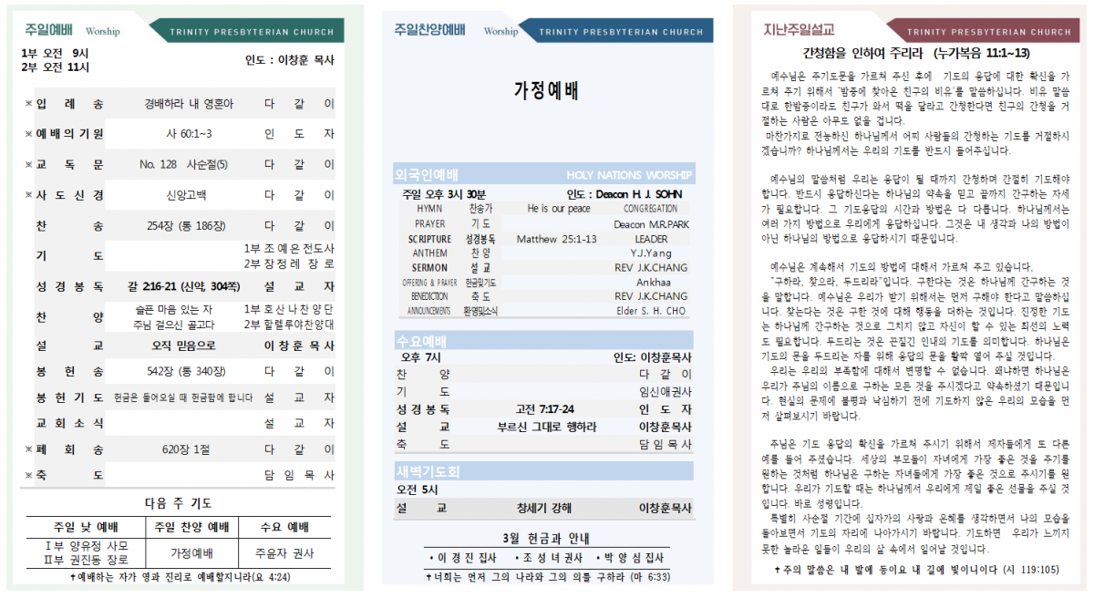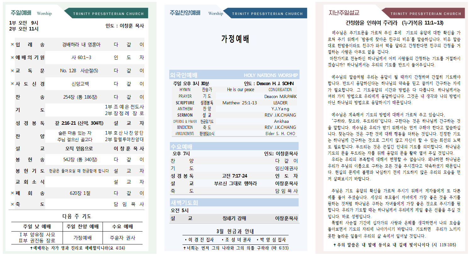 2021년 3월 21일 교회소식 삼위교회 댓글 0건 조회 17,621회 작성일 2021-03-20 13:46 가 본문내용 확대/축소 본문 2021년 3월 21일 교회소식2021년 3월 21일 교회소식 <이미지를 클릭하면 크게 보실 수 있습니다> 목록 댓글목록 이전글2021년 3월 28일 교회소식 21.03.27 다음글2020년 3월 14일 교회소식21.03.13