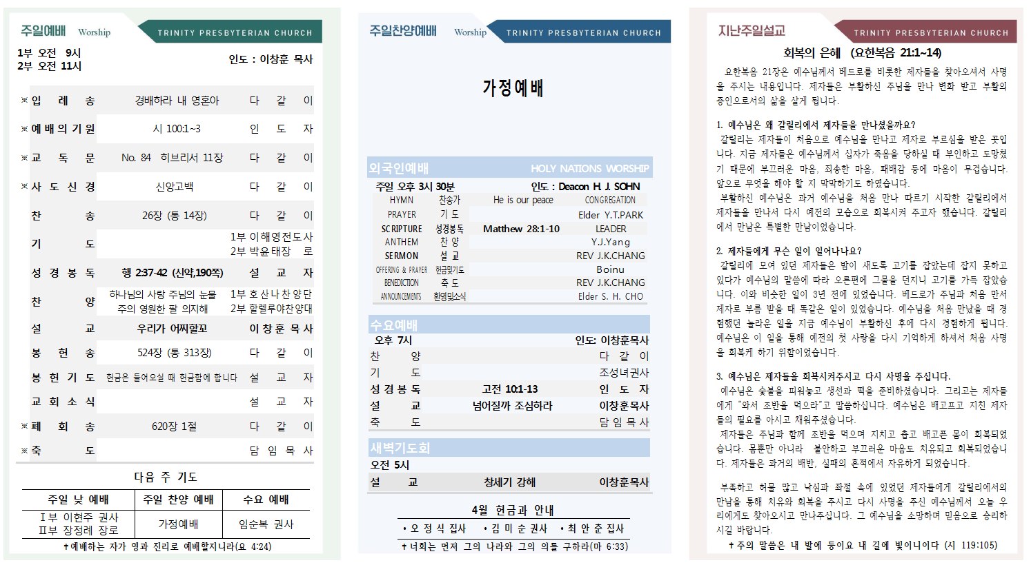 2021년 4월 18일 교회소식 삼위교회 댓글 0건 조회 17,393회 작성일 2021-04-17 15:15 가 본문내용 확대/축소 본문 2021년 4월 18일 교회소식2021년 4월 18일 교회소식 <이미지를 클릭하면 크게 보실 수 있습니다> 목록 댓글목록 이전글2021년 4월 25일 교회소식 21.04.24 다음글2021년 4월 11일 교회소식21.04.10