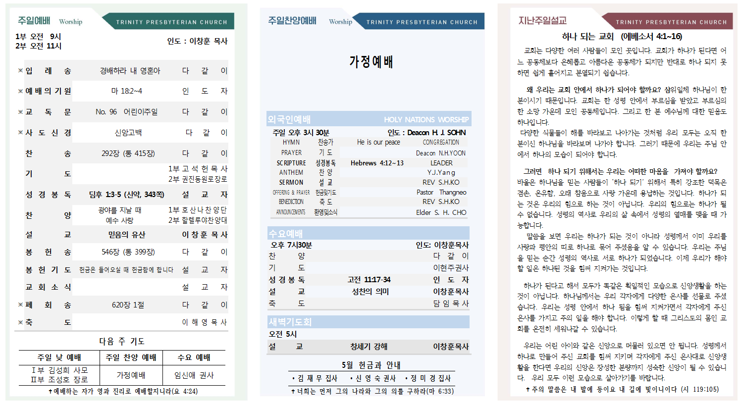 2021년 5월 2일 교회소식 삼위교회 댓글 0건 조회 17,484회 작성일 2021-05-01 14:50 가 본문내용 확대/축소 본문 2021년 5월 2일 교회소식2021년 5월 2일 교회소식 <이미지를 클릭하면 크게 보실 수 있습니다> 목록 댓글목록 이전글2021년 5월 9일 교회소식 21.05.08 다음글2021년 4월 25일 교회소식21.04.24