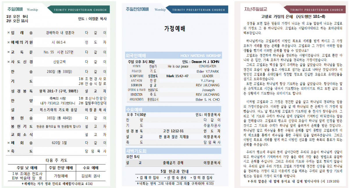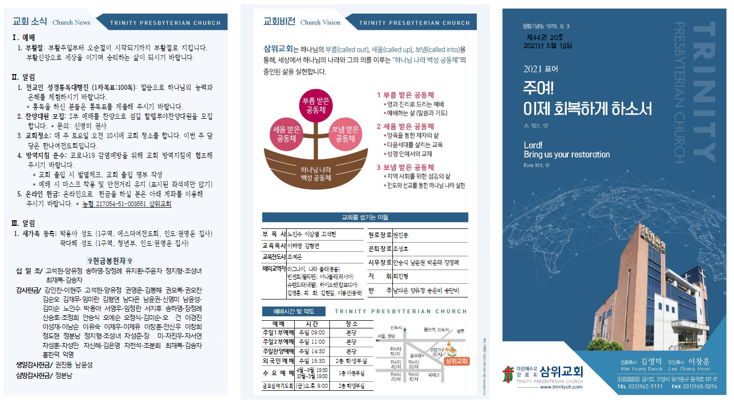 2021년 5월 16일 교회소식 삼위교회 댓글 0건 조회 17,507회 작성일 2021-05-15 15:50 가 본문내용 확대/축소 본문 2021년 5월 16일 교회소식2021년 5월 16일 교회소식 <이미지를 클릭하면 크게 보실 수 있습니다> 목록 댓글목록 이전글2021년 5월 23일 교회소식 21.05.22 다음글2021년 5월 9일 교회소식21.05.08