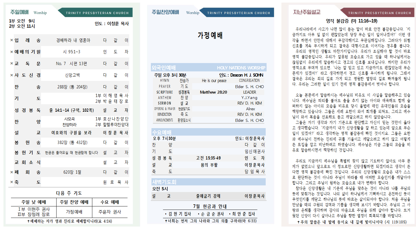 2021년 6월 27일 교회소식 삼위교회 댓글 0건 조회 17,269회 작성일 2021-06-26 13:50 가 본문내용 확대/축소 본문 2021년 6월 27일 교회소식2021년 6월 27일 교회소식 <이미지를 클릭하면 크게 보실 수 있습니다> 목록 댓글목록 이전글2021년 7월 4일 교회소식 21.07.03 다음글2021년 6월 20일 교회소식21.06.19