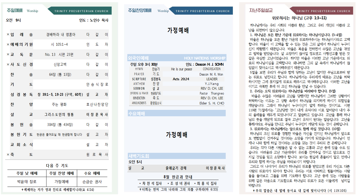2021년 7월 25일 교회소식 삼위교회 댓글 0건 조회 17,047회 작성일 2021-07-24 16:07 가 본문내용 확대/축소 본문 2021년 7월 25일 교회소식2021년 7월 25일 교회소식 <이미지를 클릭하면 크게 보실 수 있습니다> 목록 댓글목록 이전글2021년 8월 1일 교회소식 21.07.31 다음글2021년 7월 18일 교회소식21.07.17