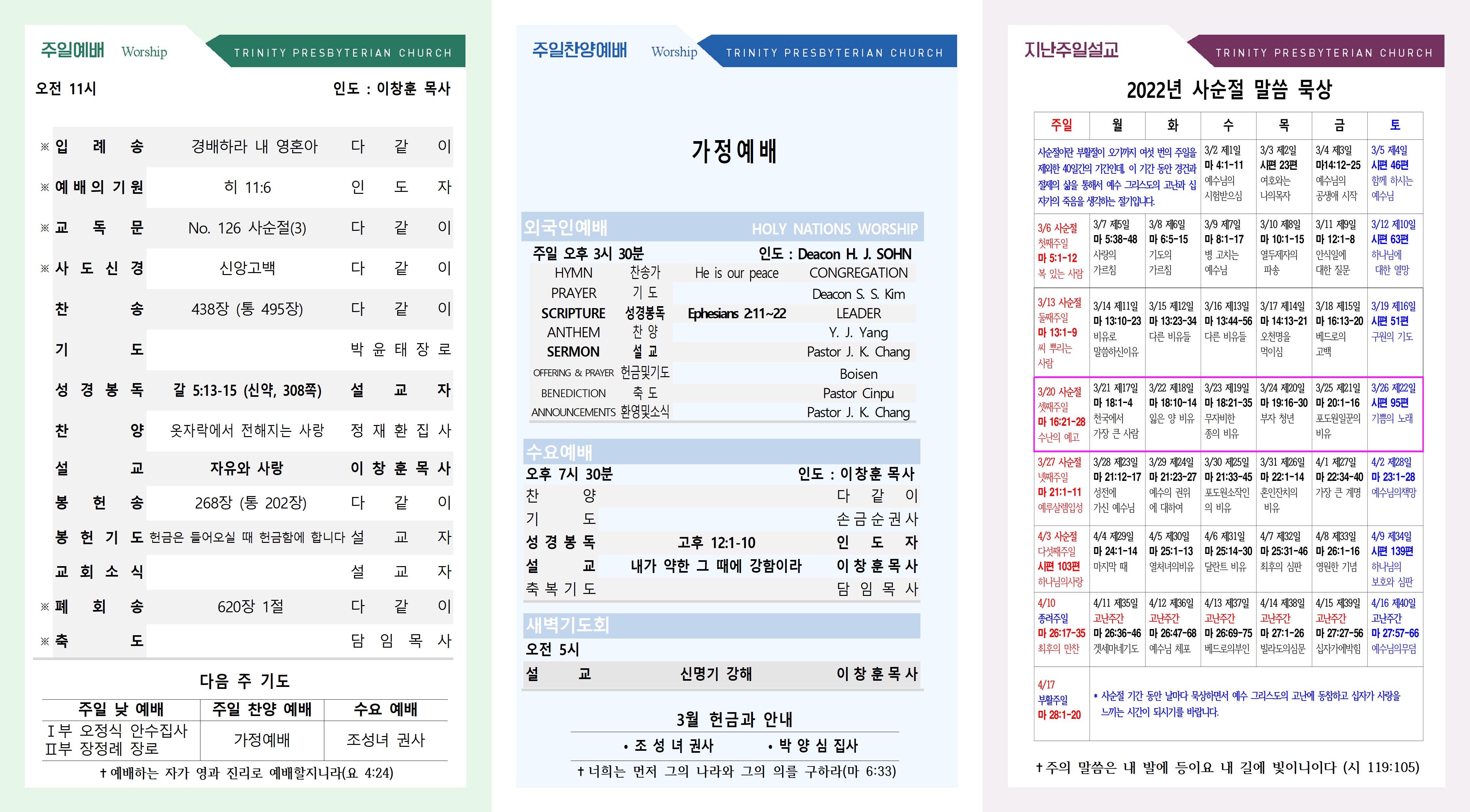 2022년 3월 20일 교회주보 삼위교회 댓글 0건 조회 16,482회 작성일 2022-03-19 12:26 가 본문내용 확대/축소 본문 2022년 3월 20일 교회주보2022년 3월 20일 교회주보 <이미지를 클릭하시면 크게 보실 수 있습니다.> 목록 댓글목록 이전글2022년 3월 27일 교회주보 22.03.26 다음글2022년 3월 13일 교회주보22.03.12
