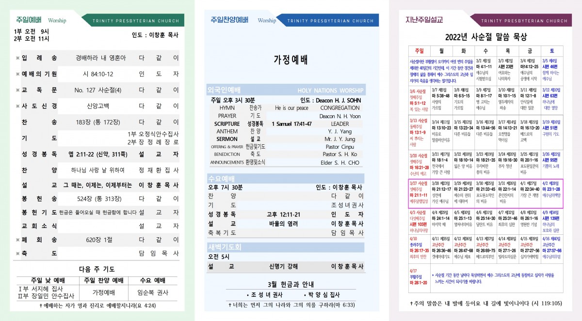 2022년 3월 27일 교회주보 삼위교회 댓글 0건 조회 16,521회 작성일 2022-03-26 14:27 가 본문내용 확대/축소 본문 2022년 3월 27일 교회주보2022년 3월 27일 교회주보 <이미지를 클릭하시면 크게 보실 수 있습니다.> 목록 댓글목록 이전글2022년 4월 3일 교회주보 22.04.02 다음글2022년 3월 20일 교회주보22.03.19