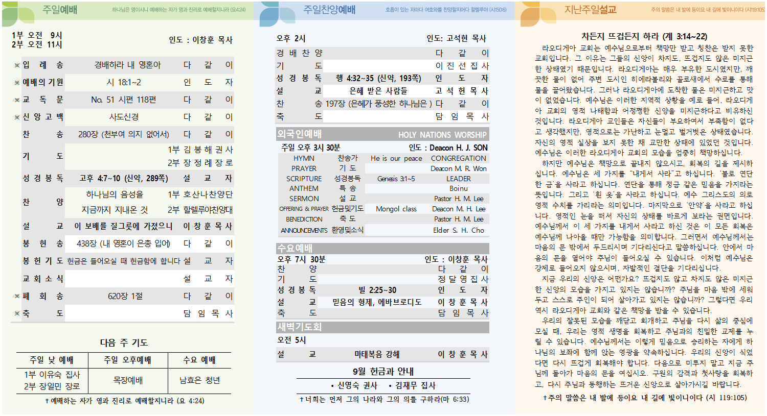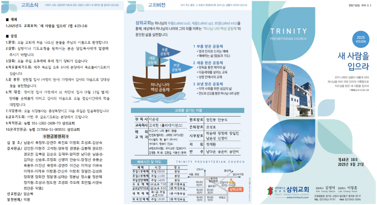 2025년 9월 21일 주보 삼위교회 댓글 0건 조회 1,743회 작성일 2025-09-20 11:23 가 본문내용 확대/축소 본문 2025년 9월 21일 주보2025년 9월 21일 주보 <이미지를 클릭하시면 크게 보실 수 있습니다.> 목록 댓글목록 이전글2025년 9월 28일 주보 25.09.27 다음글2025년 9월 14일 주보25.09.13