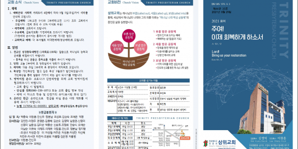 1) 섬김과 봉사를 통해 세상의 빛과 소금이 되는 교회