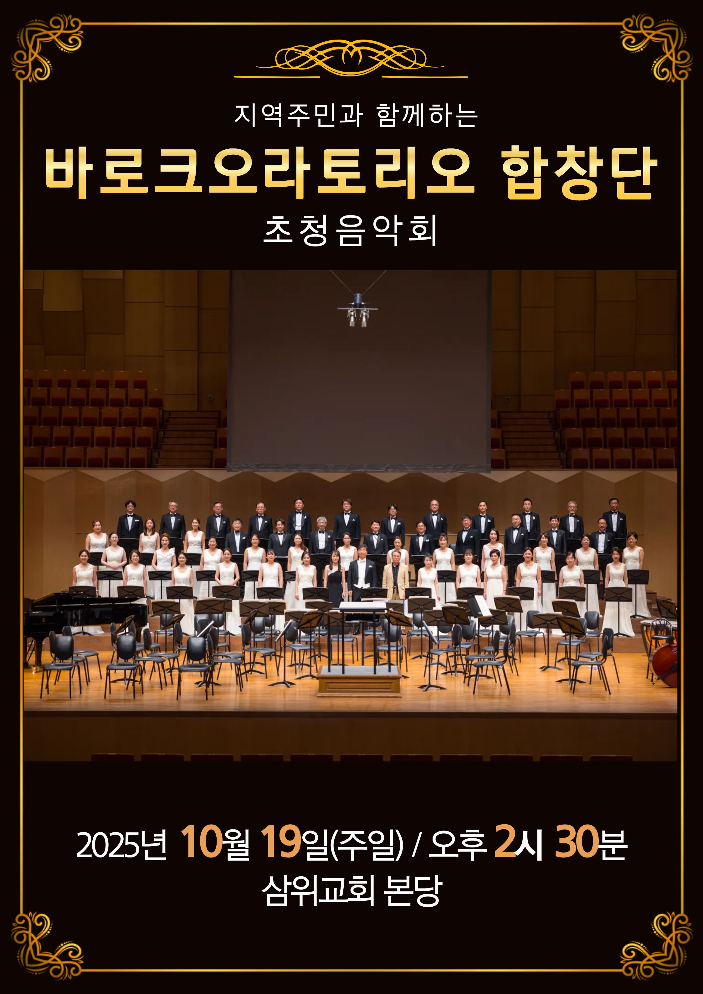 2025 바로크오라토리오 합창단 초청음악회 삼위교회 댓글 0건 조회 1,190회 작성일 2025-09-24 11:53 가 본문내용 확대/축소 본문 2025 바로크오라토리오 합창단 초청음악회 지역 주민과 함께 하는 바로크오라토리오 합창단 초청음악회 일시 : 2025년 10월 19일(주일) 오후 2시 30분 장소 : 삼위교회 본당 목록 댓글목록 이전글2025 영성 세미나 25.09.24 다음글2025 제 34회 함해노회 가을 찬양 합창제25.09.24
