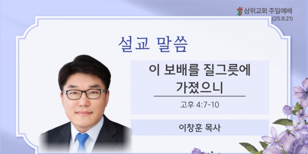 설교자 : 이창훈목사 | 설교본문 : 고린도후서 4장 7-10절 | 설교일 : 2025년 09월 21일