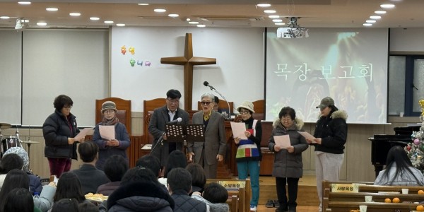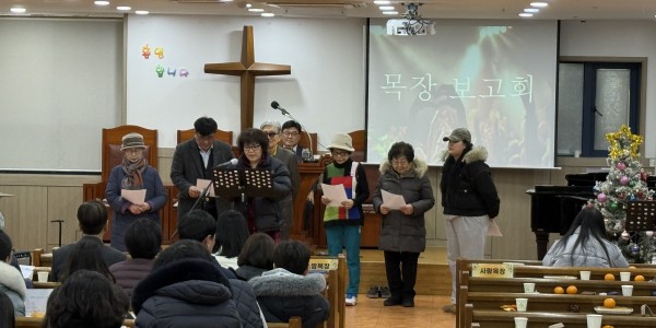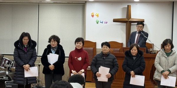 1월 2일 금요기도회 시간에 2026년도 각 목장(믿음, 소망, 사랑, 화평, 충성 목장)을  섬길 목자, 예비목자를 임명하고 함께 기도하는 시간을 가졌습니다.