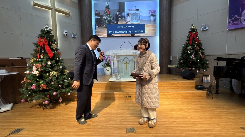 2025년 12월 14일 새가족교육 수료식 삼위교회 댓글 0건 조회 102회 작성일 2025-12-14 16:19 가 본문내용 확대/축소 본문 2025년 12월 14일 새가족교육 수료식2025년 12월 14일 새가족교육 수료식2025년 12월 14일 새가족교육 수료식 2025년 12월 14일 새가족교육 수료식 *수료자: 박현순 권사 (믿음목장, 에스더여전도회) 목록 댓글목록 이전글2025 성탄축하잔치 25.12.23 다음글2025년 새가족교육 수료식 (12월 7일)25.12.09