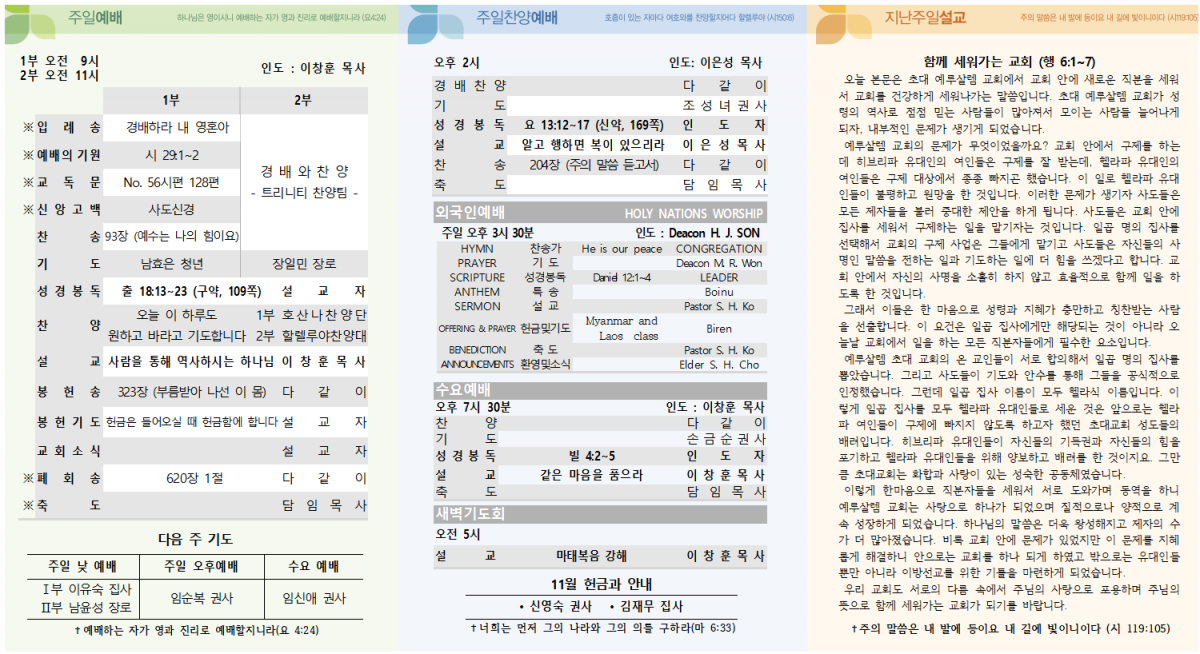 2025년 11월 2일 주보 삼위교회 댓글 0건 조회 13회 작성일 2025-11-01 11:34 가 본문내용 확대/축소 본문 2025년 11월 2일 주보2025년 11월 2일 주보 <이미지를 클릭하시면 크게 보실 수 있습니다.> 목록 댓글목록 다음글2025년 10월 26일 주보25.10.25