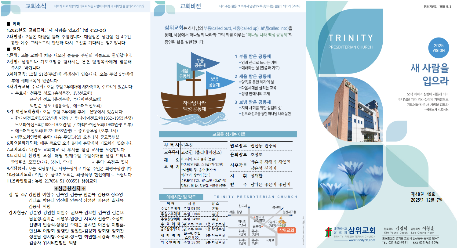 2025년 12월 7일 주보 삼위교회 댓글 0건 조회 2,766회 작성일 2025-12-06 13:41 가 본문내용 확대/축소 본문 2025년 12월 7일 주보2025년 12월 7일 주보 <이미지를 클릭하시면 크게 보실 수 있습니다.> 목록 댓글목록 이전글2025년 12월 14일 주보 25.12.13 다음글2025년 11월 30일 주보25.11.29