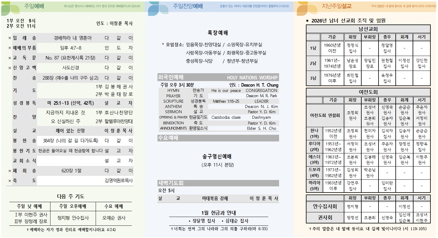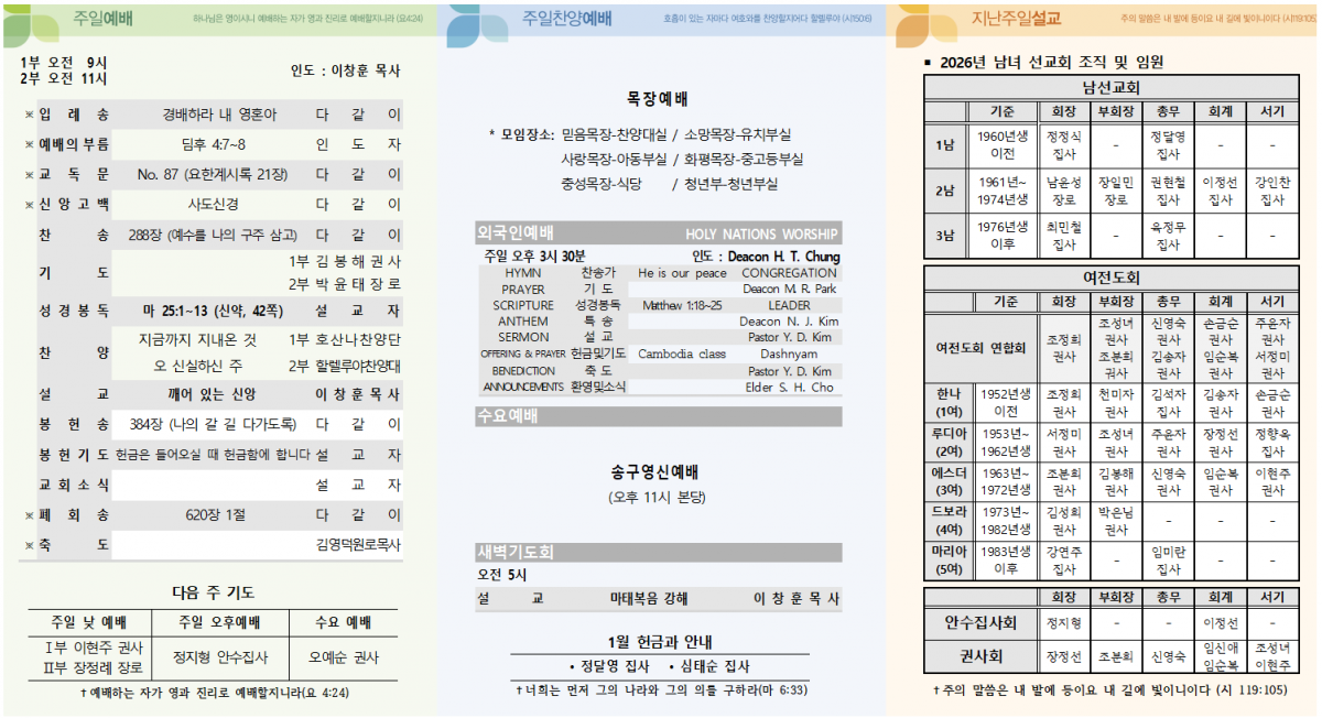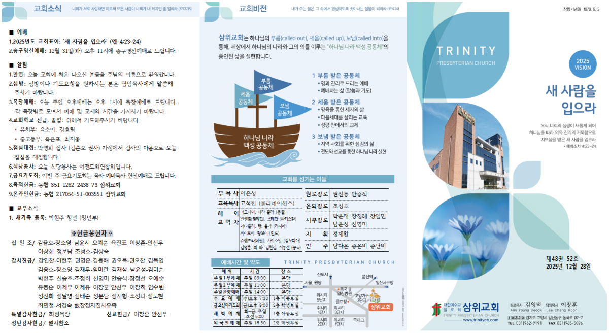 2025년 12월 28일 주보 삼위교회 댓글 0건 조회 644회 작성일 2025-12-27 14:26 가 본문내용 확대/축소 본문 2025년 12월 28일 주보2025년 12월 28일 주보 <이미지를 클릭하시면 크게 보실 수 있습니다.> 목록 댓글목록 이전글2026년 1월 4일 주보 26.01.03 다음글2025년 12월 21일 주보25.12.20